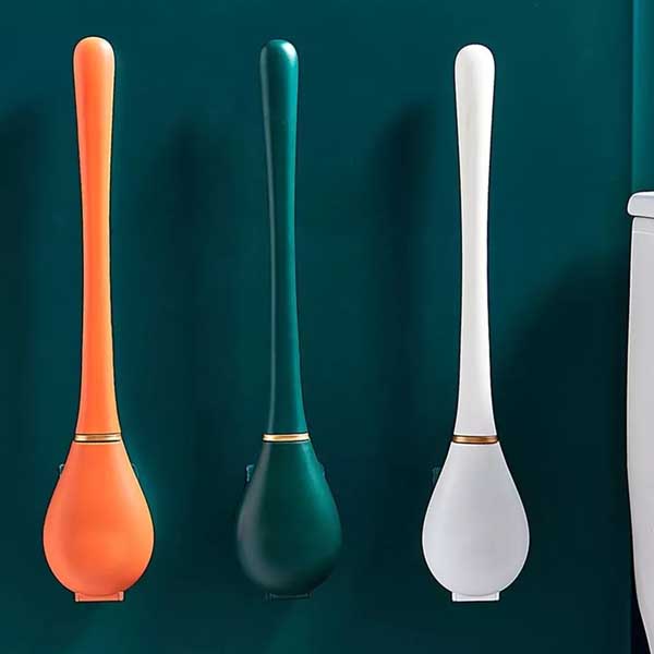 A sua escova de silicone torna-a flexível, mas resistente e o estojo retrátil moderno pode ser posto numa parede sem ter que fazer buracos, graças ao adesivo prático incluído.